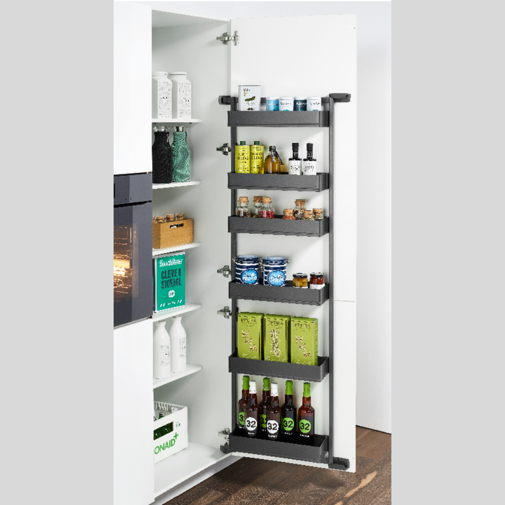 It is ideal for tall cabinets and larder units, especially where simple installation, flexibility, and clear organization are required.