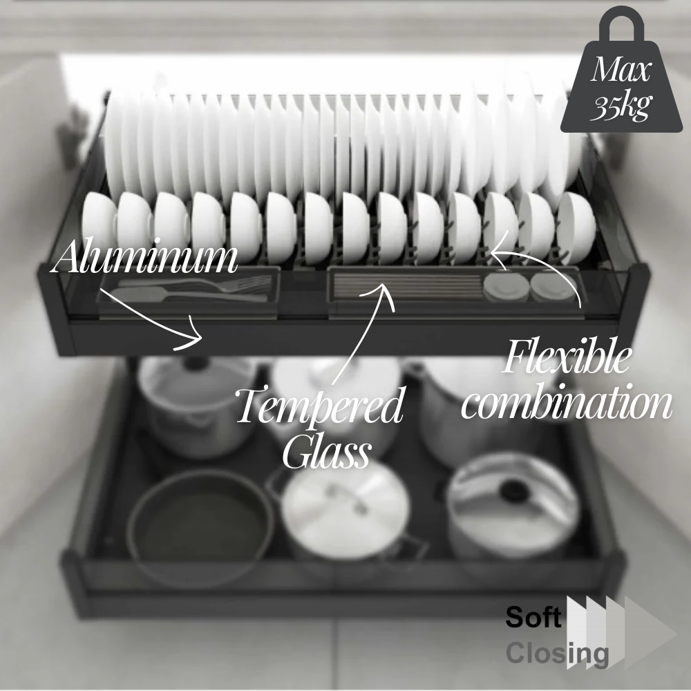 Two-tier design to hold different kinds of bowls & dishes. Two basket below are not set structure, free collocation or singleton are accepted.