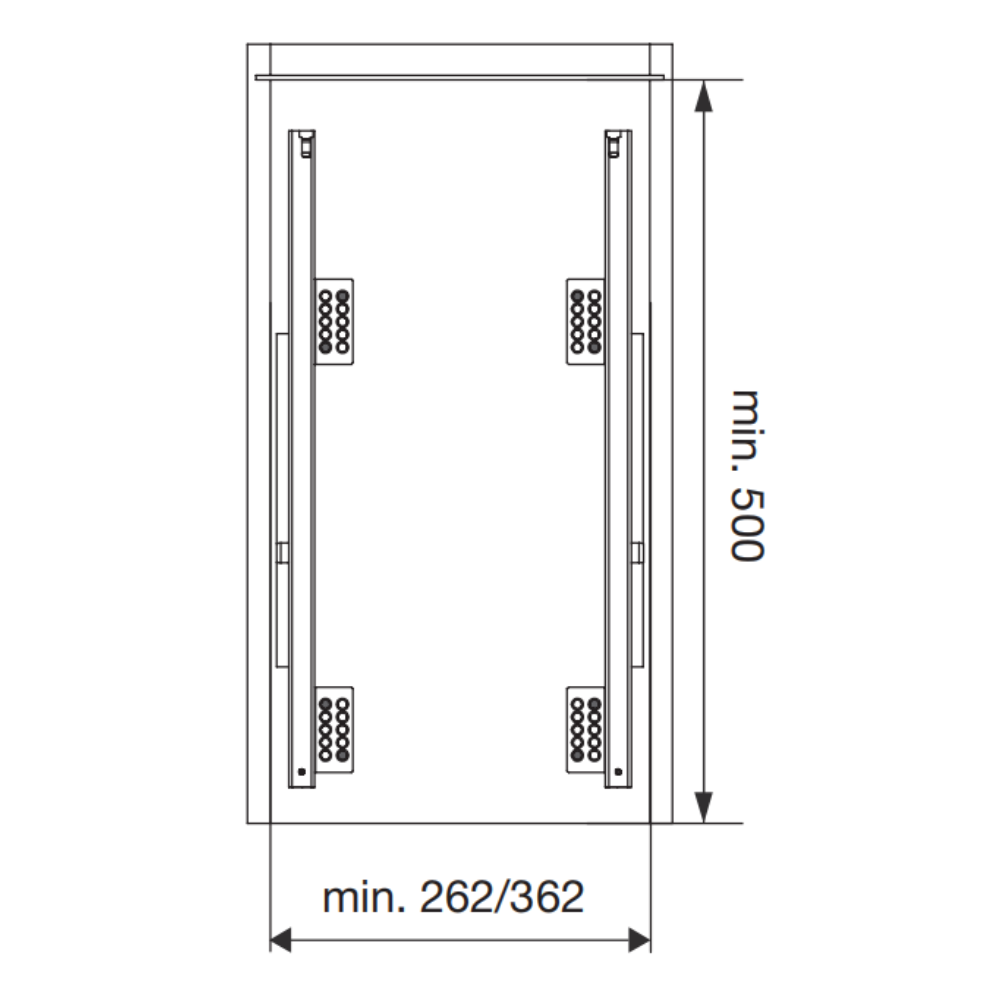 Minimum internal cabinet depth: 500 mm