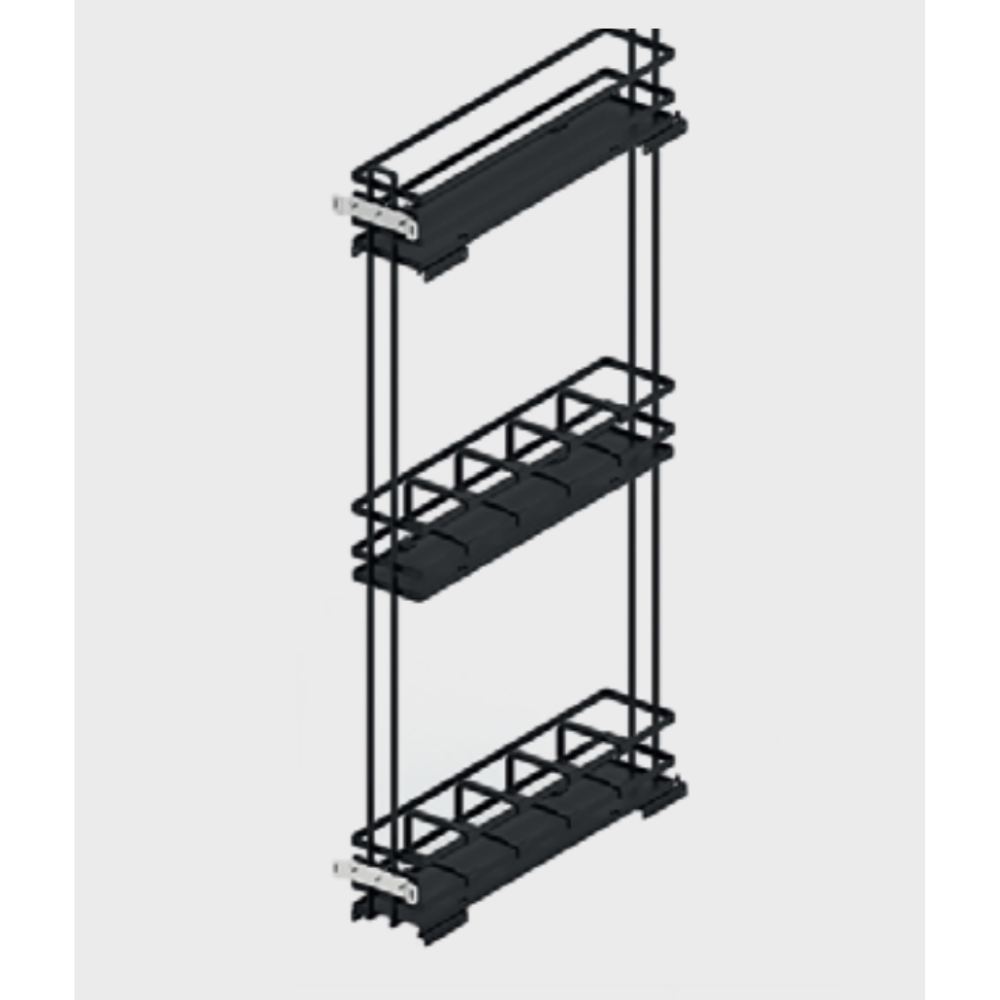 The LARIO Series 400 Base Pull-Out is a slim 3-tier pull-out basket system designed for narrow base cabinets. Featuring HDF panels, flat wire railings, and flexible runner installation options, it offers practical and space-efficient storage for bottles, condiments, and kitchen essentials.