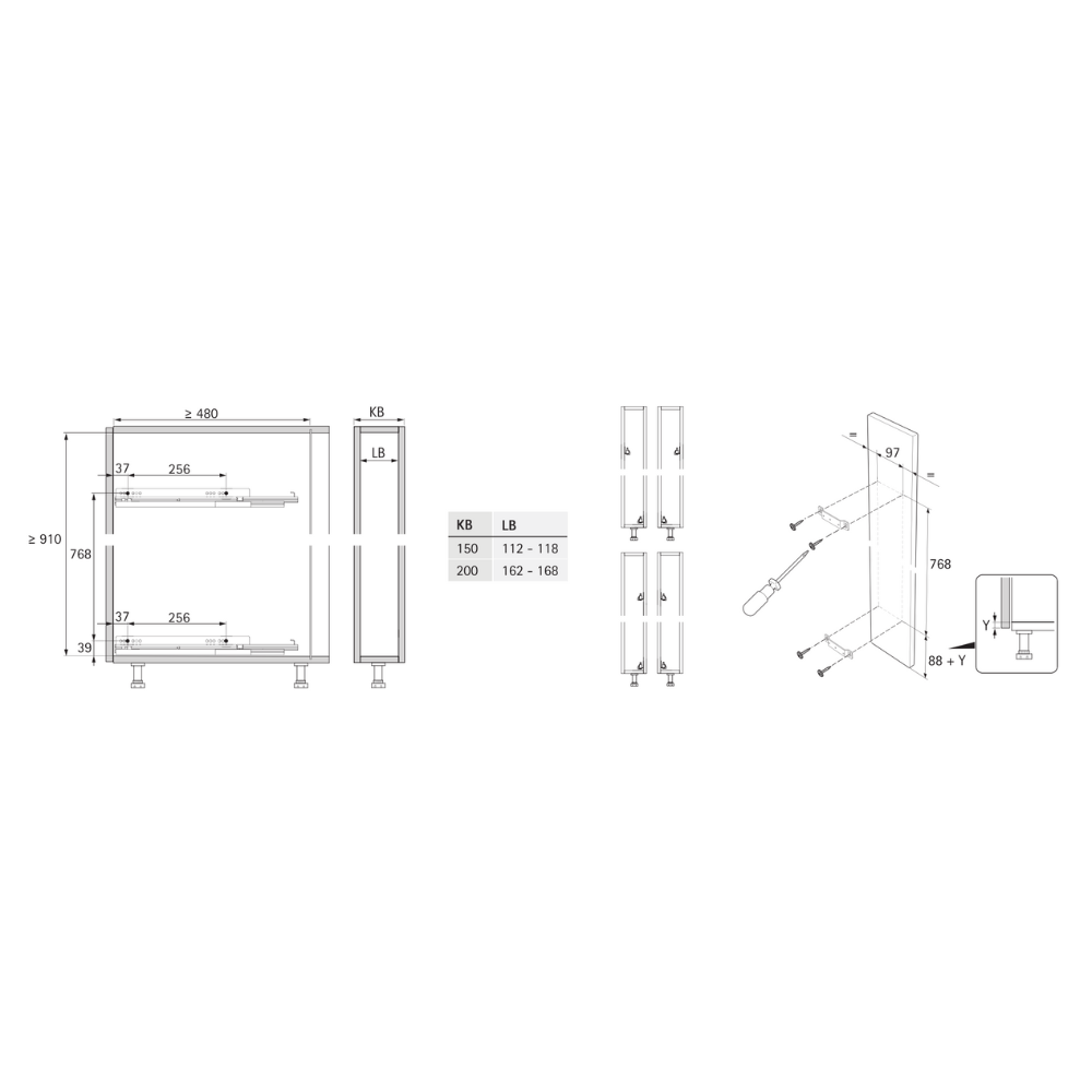 1 × 3-tier pot-and-pan pull-out drawer (preassembled)
