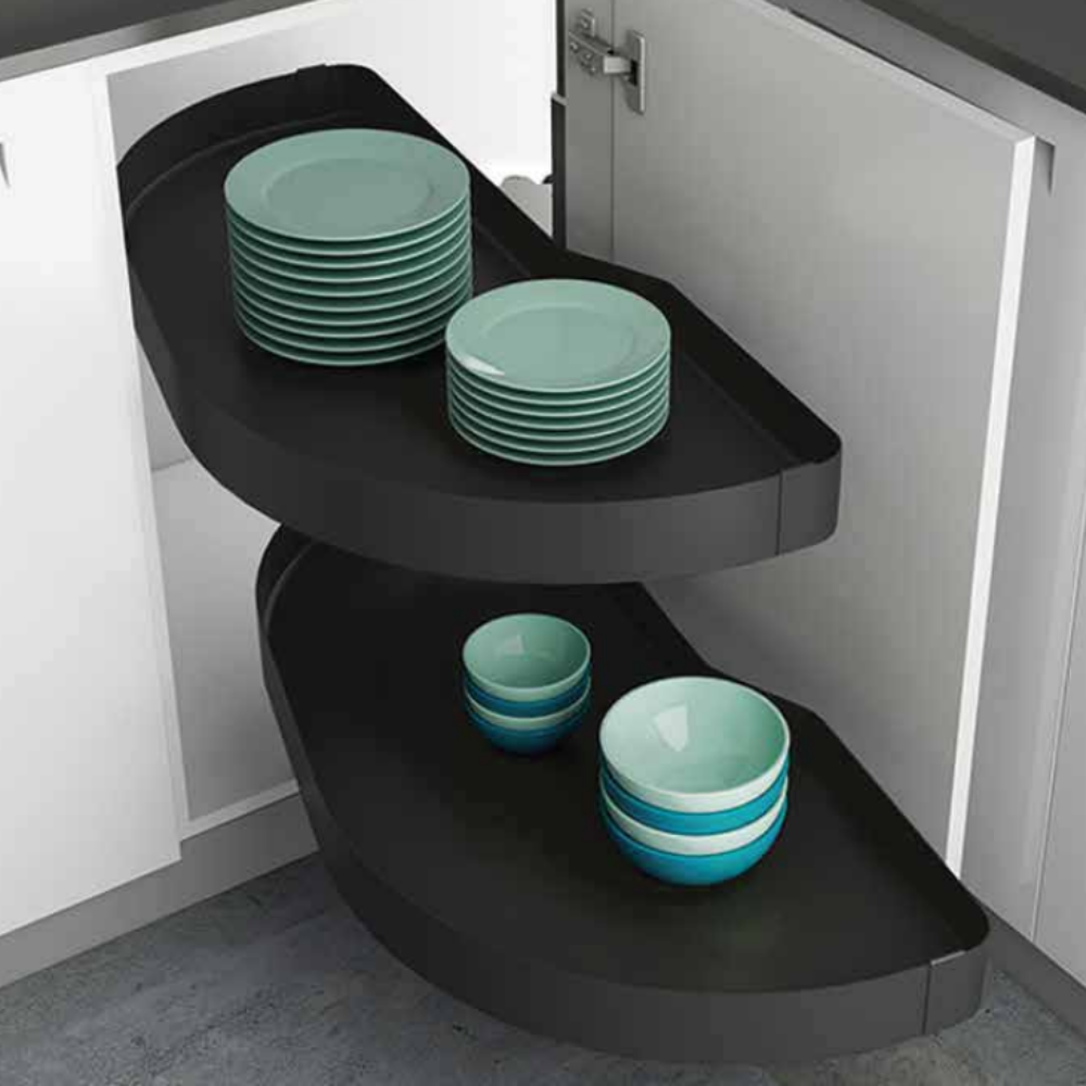 Suitable for corner units with 400 mm, 450 mm, 500 mm, or 600 mm front panel widths, the SALSO system is available in left-hand or right-hand versions to suit different cabinet configurations.