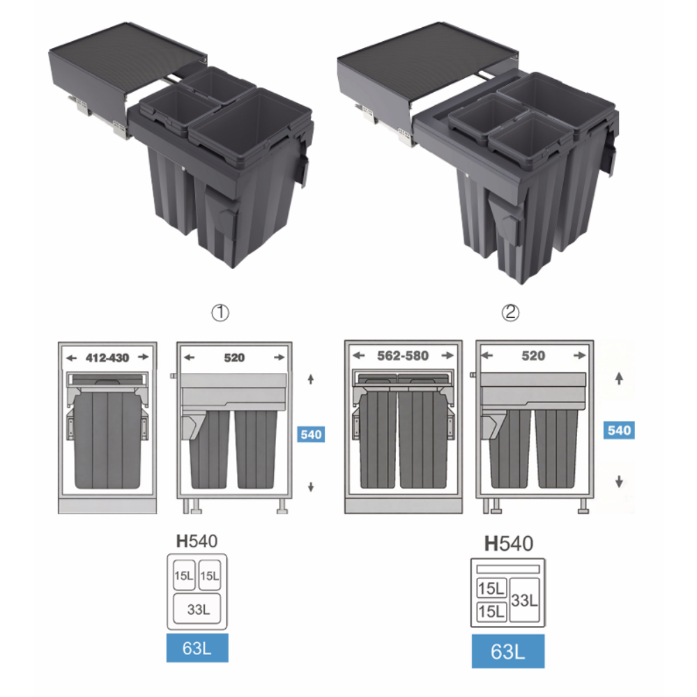 | W450mm | 412-430 x 520 x 540 |