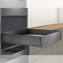 The MERIVOBOX i3 is a versatile and modern drawer system designed for kitchens and other furniture applications. It offers two sleek color options: Orion Grey and Silk White, allowing it to seamlessly blend into a variety of design styles.