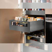 The MERIVOBOX i6 is another high-performance drawer system from BLUM, designed for modern furniture and kitchen applications. It combines sleek aesthetics with superior functionality, catering to various storage needs in everyday life.