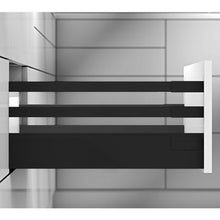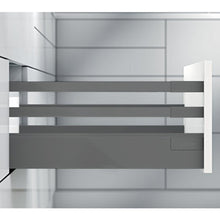 The TANDEMBOX S3 is a high Blum drawer with two rectangular gallery rails. With a height of 224 mm, this semi-closed TANDEMBOX is ideal for storing taller items, like cereal boxes, spaghetti containers, plates and dinnerware or big pots and woks.