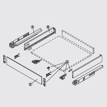 Set includes 1 pair full extension Dynapro slides, 40kg or 70kg, 1 pair H185mm drawer sides, 1 set fixing set for inset H185mm and 1 piece front panel L1160mm