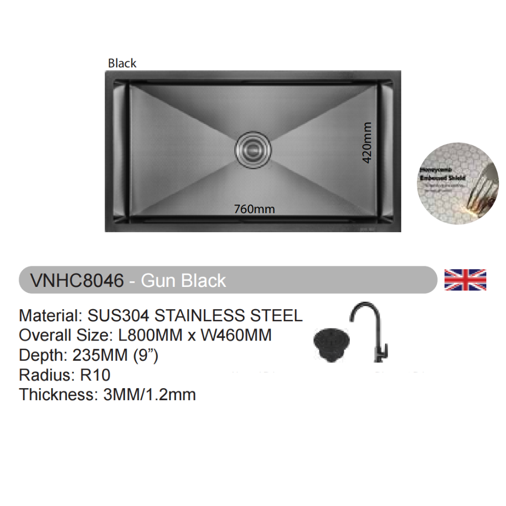 VULCANO SUS304 Stainless Steel Nano Sink Handmade Kitchen Sink [VNHC4046/VNHC5046/VNHC6046/VNHC7046/VNHC8046]
