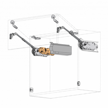 The AVENTOS HF bi-fold lift is the ideal solution for high and mid wall units. it can be used for cabinet heights of 480 to 1040 mm and cabinet widths of up to 1800 mm. Even large fronts fold up and out of the way, giving users great freedom of movement. So much so that wall cabinets can be left open during cooking.