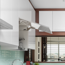 The AVENTOS HK top stay lift blends discreetly into tall units and wall cabinets. It can be used for cabinet heights of 205 to 600 mm and cabinet widths of up to 1800 mm. Though very small in size, even large and heavy fronts open and close with ultimate ease.