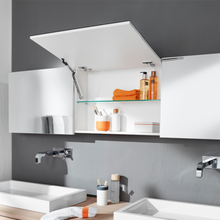 AVENTOS HK-XS is specially designed for small, top wall cabinets with heights from 240 to 600 mm and widths of up to 1800 mm, which are typically found in tight spaces like above refrigerators or extractors.