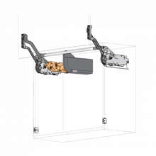 AVENTOS HL lifts up small fronts parallel to the cabinet, making it the ideal solution for mid and high wall units with cabinets positioned above them. It can be used for cabinet heights of 300 to 580 mm and cabinet widths of up to 1800 mm.