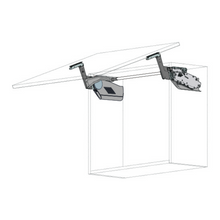 AVENTOS HS turns an ordinary flap system into an awe-inspiring experience. The one-piece, large front silently swings up and over the cabinet, providing easily-accessible storage space. It is suitable for cabinet heights of 350 to 800 mm and width of up to 1800 mm.