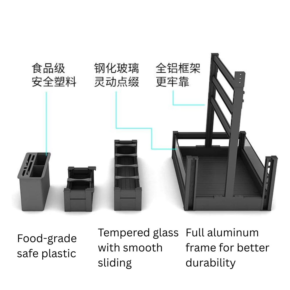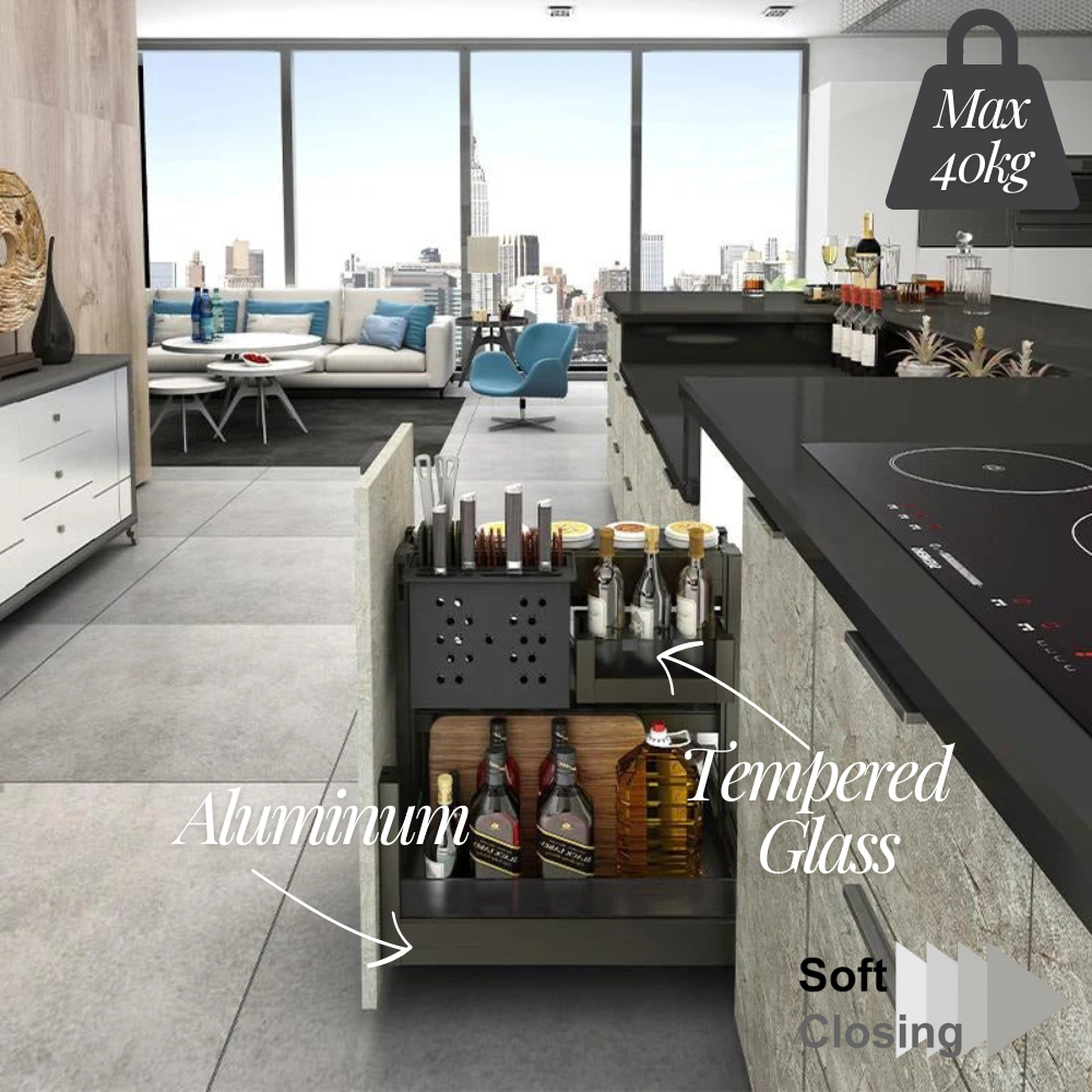 A large space to store cutting board, knife and condiment, make you convenience to sort all kinds of cooking supplies.