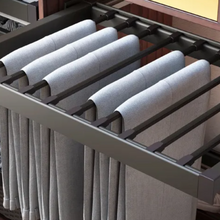 Hang up to ten pairs of pants on our exclusive pants rack featuring with anti-slip to keep pants in nice place with full extension pull out frame. It is easier for you to neatly store your pants.