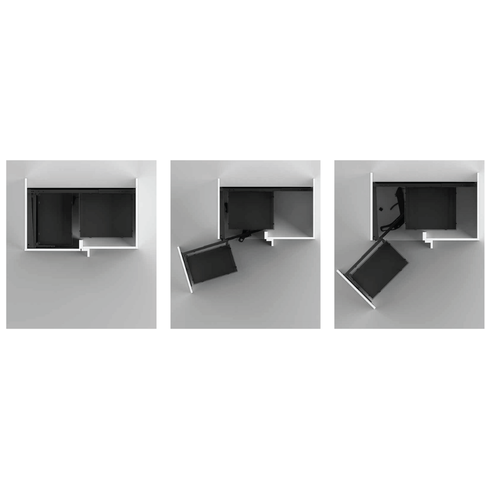The system allows the front pull-out to move smoothly together with the drawer, providing easy access to corner storage areas that are usually difficult to reach.