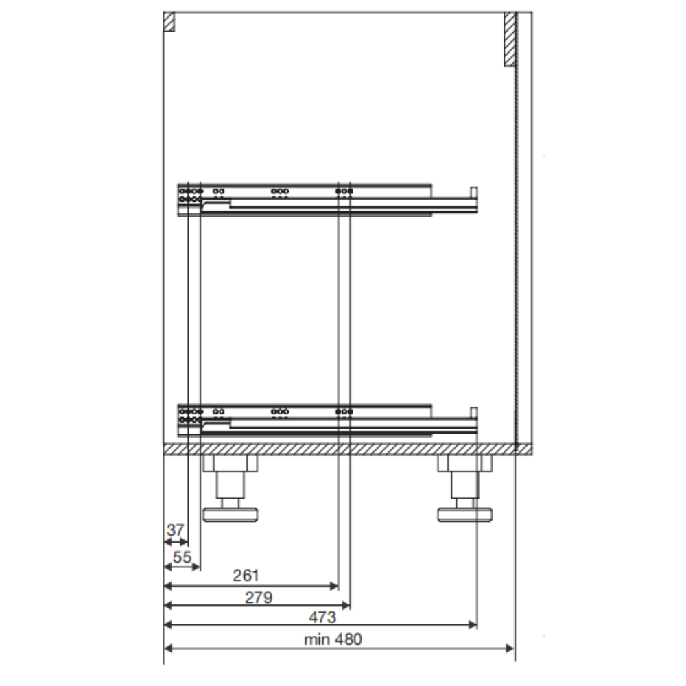 Minimum internal cabinet depth: 480 mm